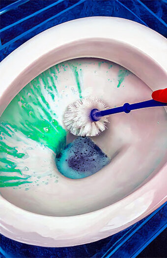 High-pressure water jetting of sewer lines connected to toilets, effectively clearing roots, grease, scale build-up, and stubborn obstructions beyond the fixture.